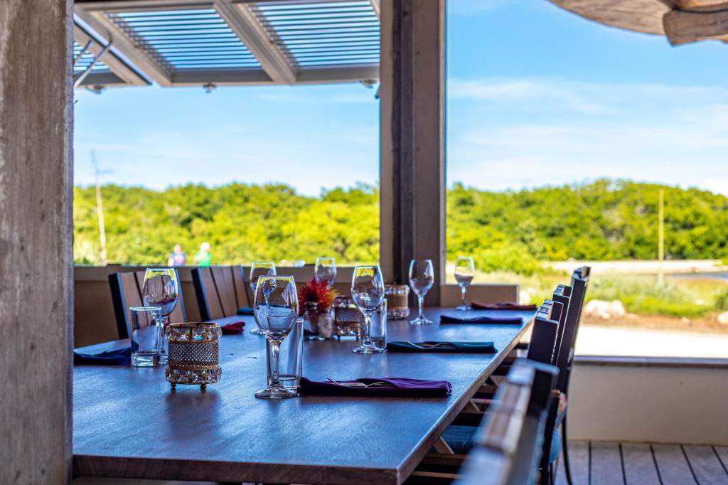 Foodies is the place to sit back, relax and enjoy an awesome DINNER in a cozy atmosphere or a LUNCH with a stunning view over the blue waters of Lac Bay.
